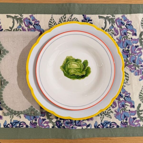 Set Placemat Fading Picknick / Napkins Vegetables / Assiette Deruta Fleurs / Assiette Points