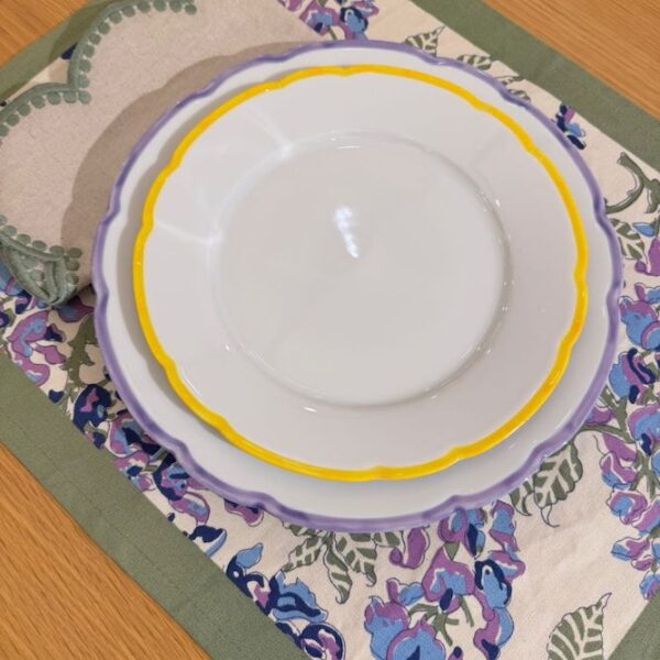 Set Placemat Wisteria / Napkin Gotas / Plate Reminiscence Violet / Plate Dessert Yellow
