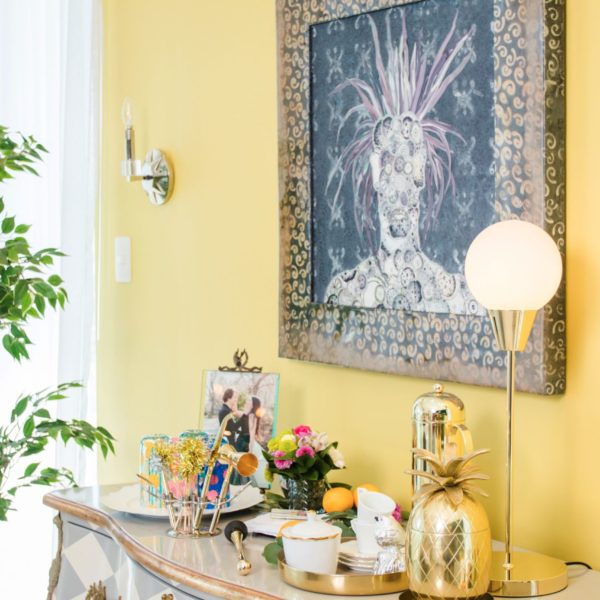 Siempre he dicho que el “bar cart” de tu hogar debe ir de acuerdo a tu personalidad, es decir si tienes pasión por esta área inspírate en uno que te llene de satisfacción, si recibes muchas personas haz uno que todas tus visitas agradezcan a la hora de visitarte. Sin embargo, si te paso como a nosotros, que no tenemos mucho espacio y tampoco le dimos tanta importancia, utiliza mesas auxiliares. En la foto puedes observar que cuando tenemos visitas desplazamos la mayoría de las piezas y elementos para que sean mas accesibles y a la vez luzcan mas presentables.