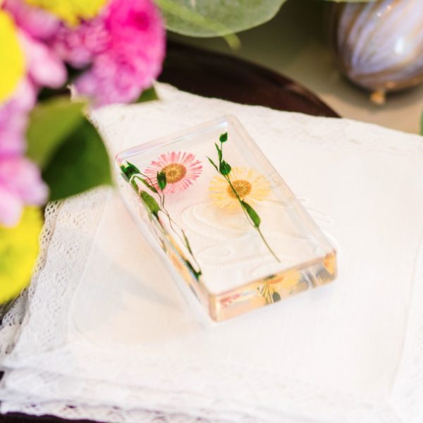 En este caso, estás servilletas eran demasiado hermosas para no darles protagonismo. Además sentiamos que el balance de la mesa no podía ser invadido por nada más. Al ser una reunión informal, y tampoco creer en reglas, las ubicamos en la isla auxiliar (la cual nos sirvió de mesa buffet) sobre una bandeja tamaño extra large, la cual es nuestro multiuso #1, dobladas de acuerdo a su diseño en escamas y sobre estos algunos de los pisa servilletas, pisa papeles o multiusos favoritos: “Flores Naturales en Resina”. Pueden observar como las utilizamos en diferentes espacios de la casa como; bar, buffet y salón para uso en las “picaderas”.