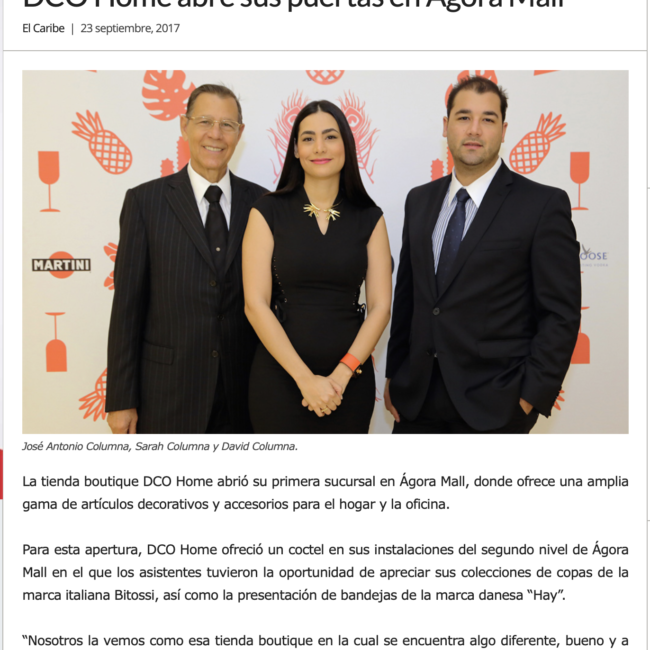 DCO Home abre sus puertas en Ágora Mall La boutique de artículos únicos y contemporáneos, DCO Home abre su primera sucursal en ÁGORA Mall ofreciendo una amplia gama de complementos decorativos, accesorios y artículos de cocina originales en el país. En esta apertura oficial, DCO Home ofreció un coctel interactivo en el que los asistentes tuvieron la oportunidad de apreciar todos los elementos de sus colecciones internacionales haciendo partícipes de la celebración a…