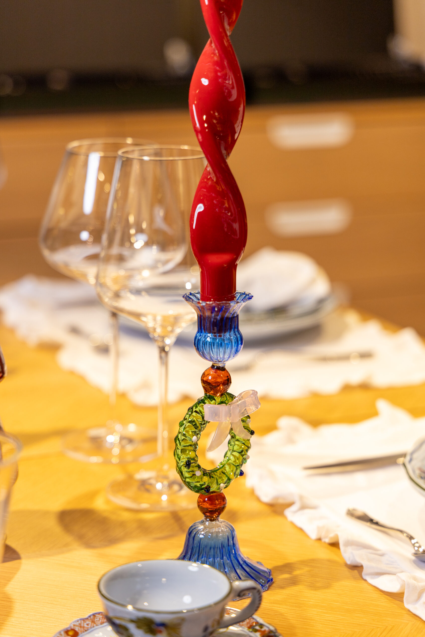 Hermosa Vela con forma de hélice en color rojo, perfecta para embellecer tu mesa o cualquier espacio de tu hogar.