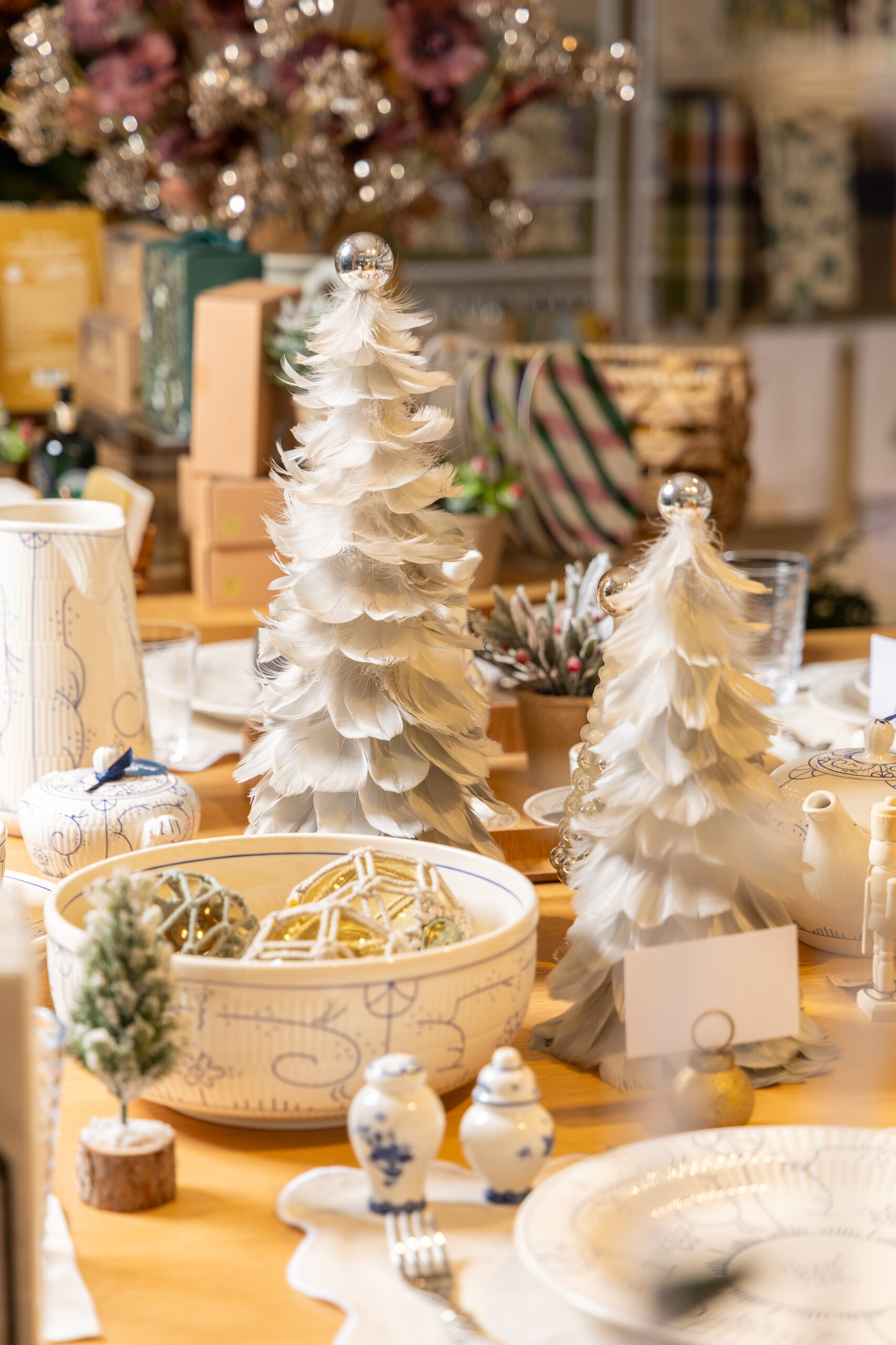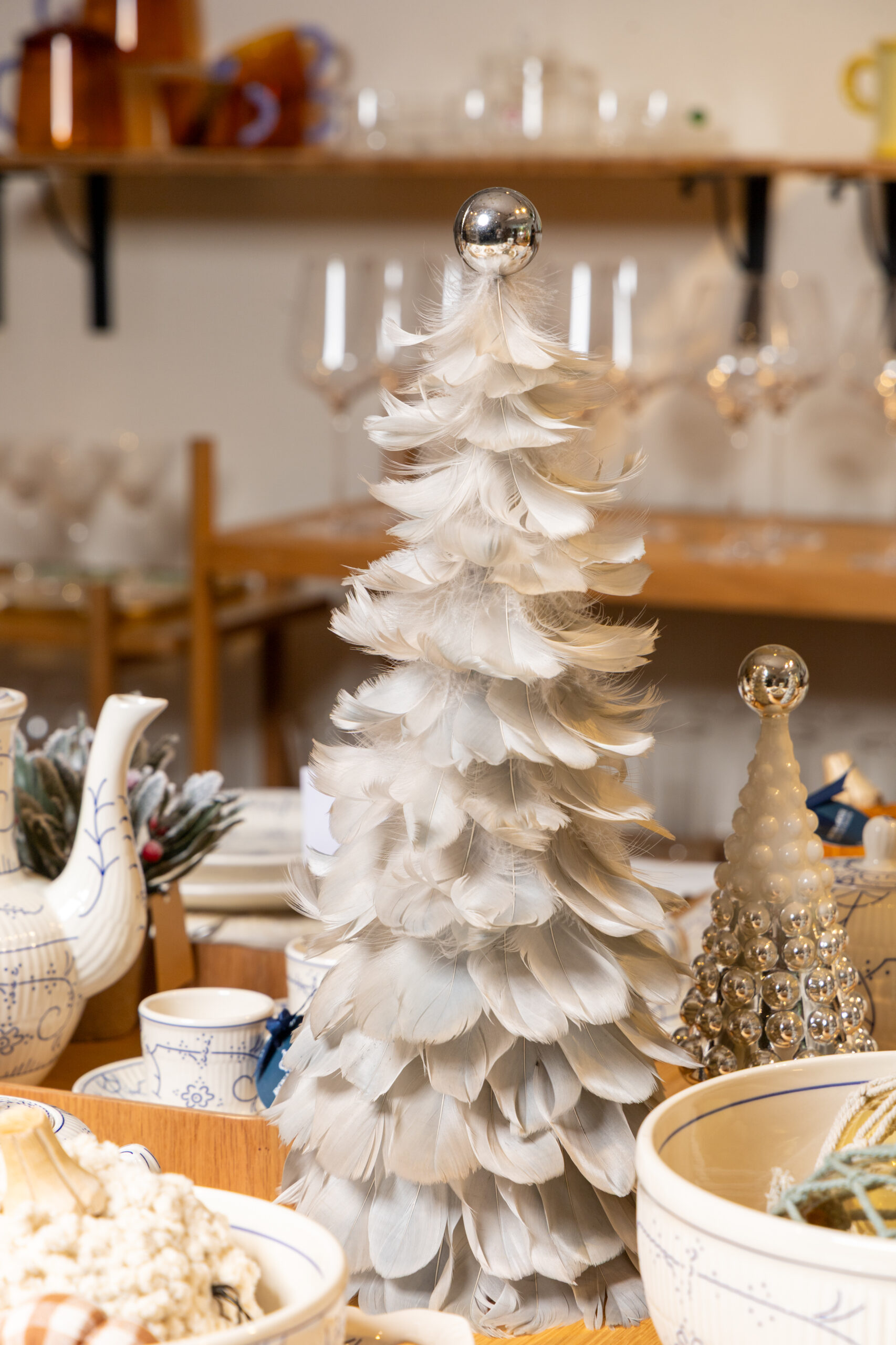 Hermoso Arbolito elaborado en plumas es un complemento para cualquier decoración navideña.