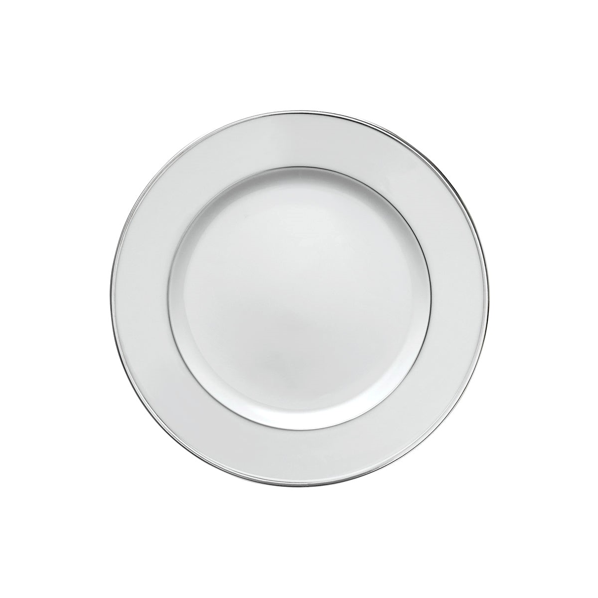 El plato GALON PLATINE de 21,5 cm en porcelana blanca de Limoges está decorado con una decoración de platino aplicada a mano, perfecto para darle un toque elegante a tu mesa.