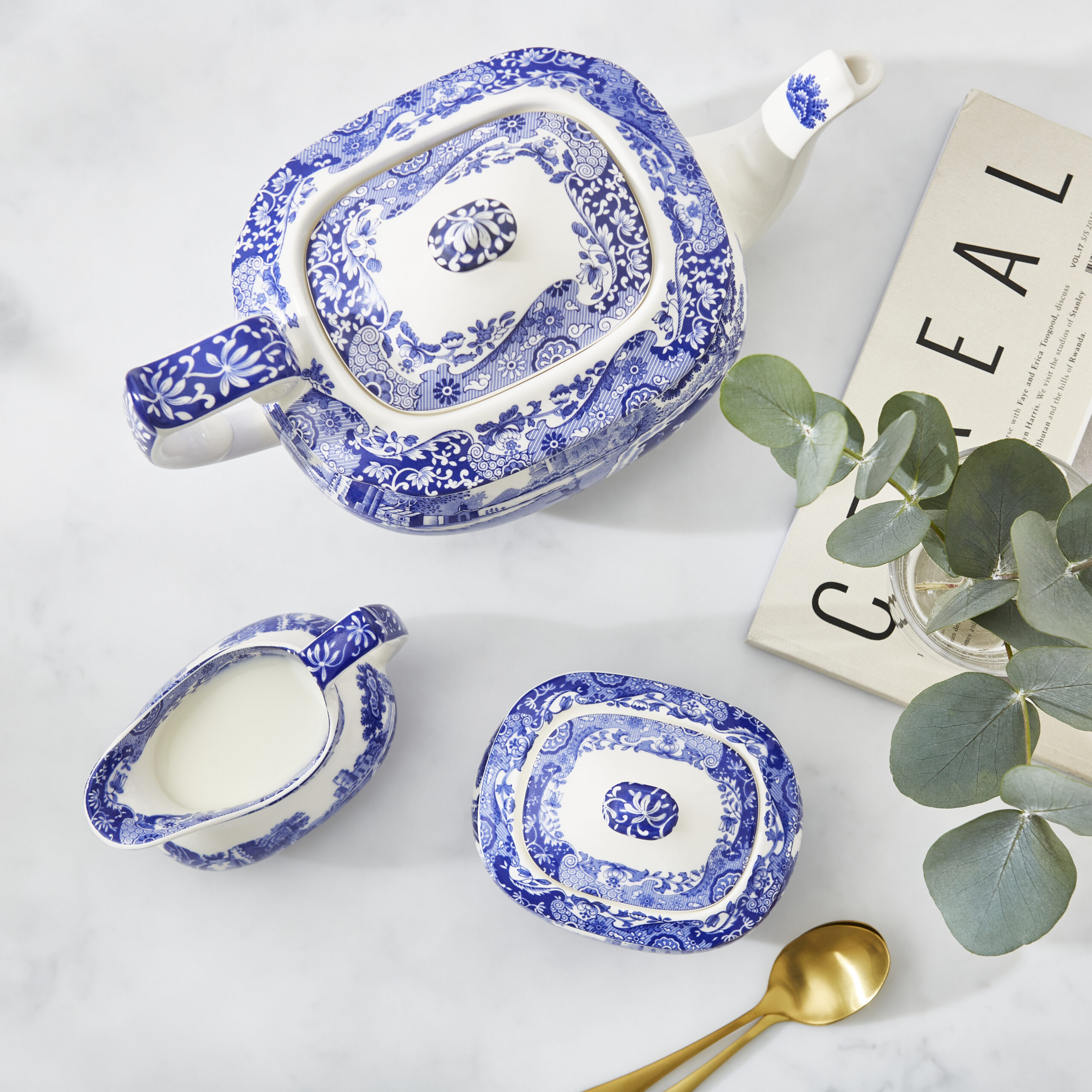 Esta elegante tetera italiana azul es la pieza central perfecta para una elegante merienda. También es un regalo maravilloso para quienes disfrutan de recibir invitados. La tetera luce un borde oriental Imari del siglo XVIII, finamente detallado, que enmarca una impresionante escena inspirada en la campiña italiana. Diseñada para la vida moderna.