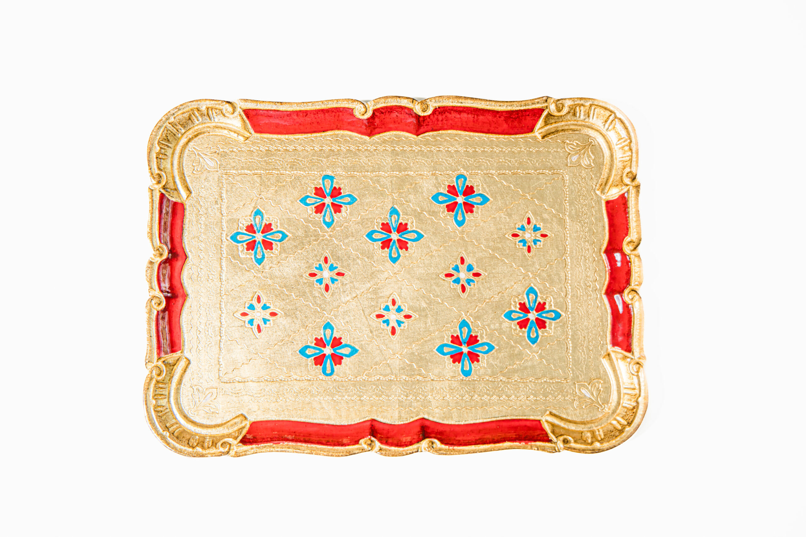 Bandeja florentina de madera y plexiglás, hecha a mano y pintada en Florencia, decorada con pan de oro.