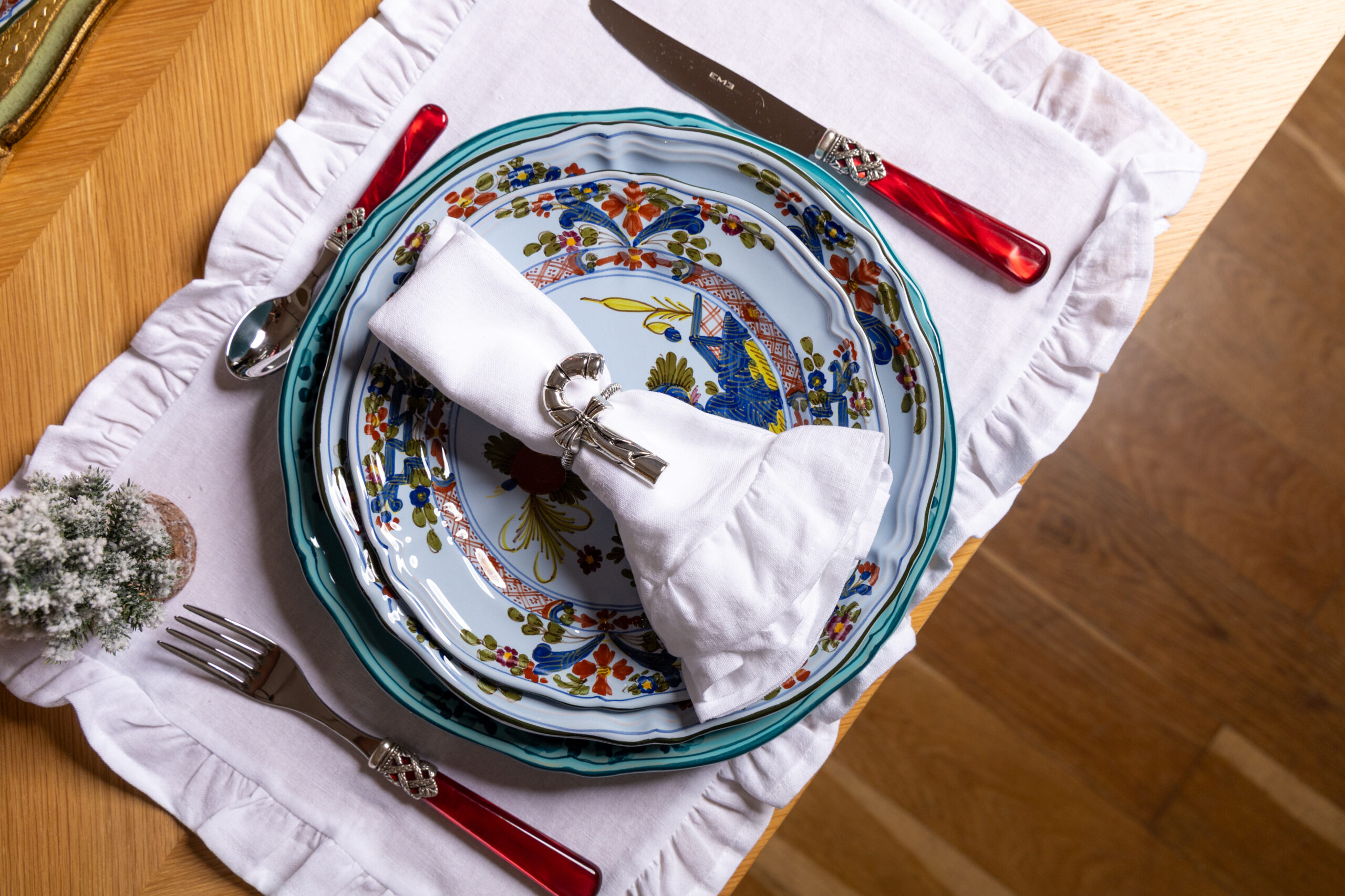 Set de 4 Servilleteros de aleación de zinc de aproximadamente 5 cm de alto con bastones de caramelo, acabado plateado, ideales para poner en tu mesa a la hora de recibir invitados a tu hogar.