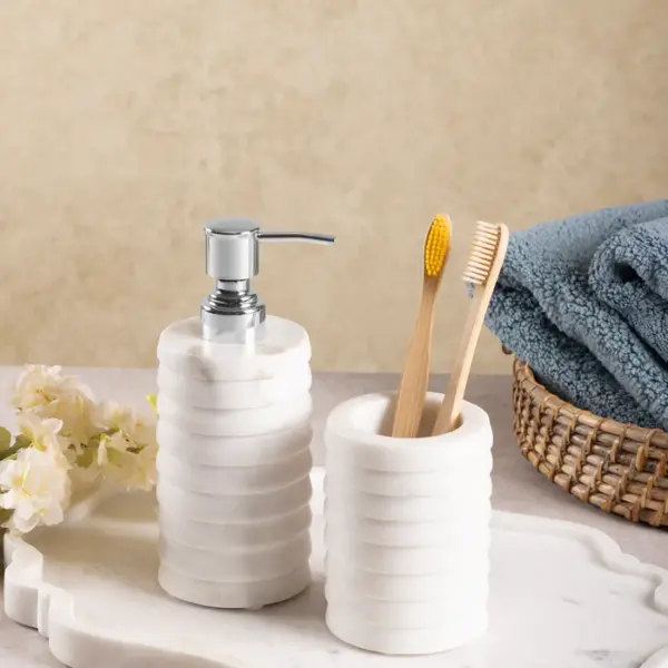 RAAVI RIBBED MARBLE BATH SET