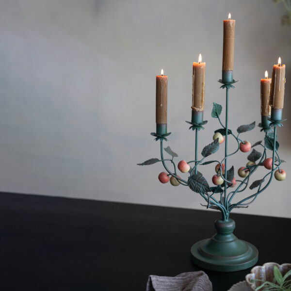 Hand-Painted Metal Vintage Reproduction Toleware Candelabra with Crabapples Holds 5 Tapers