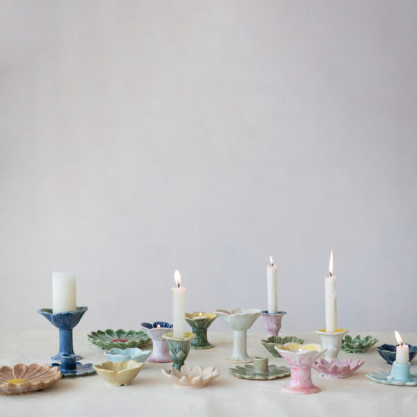 Stoneware Flower Shaped Footed Tealight Holder 3 Styles