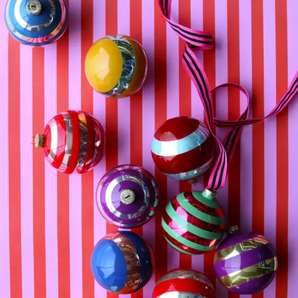 Stripey Baubles - Large Set of 6